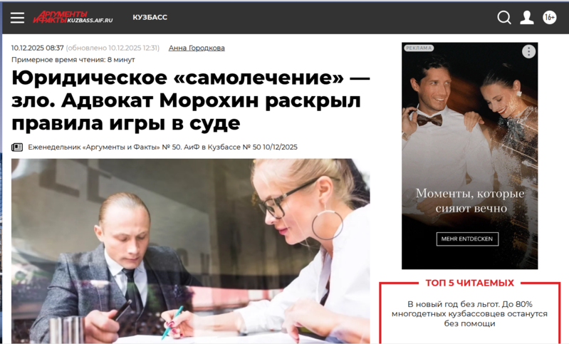 К международному дню прав человека (10 декабря) я ответил на некоторые вопросы корреспондента еженедельника «АиФ в Кузбассе» Анны Городковой, но в силу ограниченности объёма печатного издания, первоначальный текст интервью уместился не полностью, но на страницах Праворуба я размещаю его полную версию.